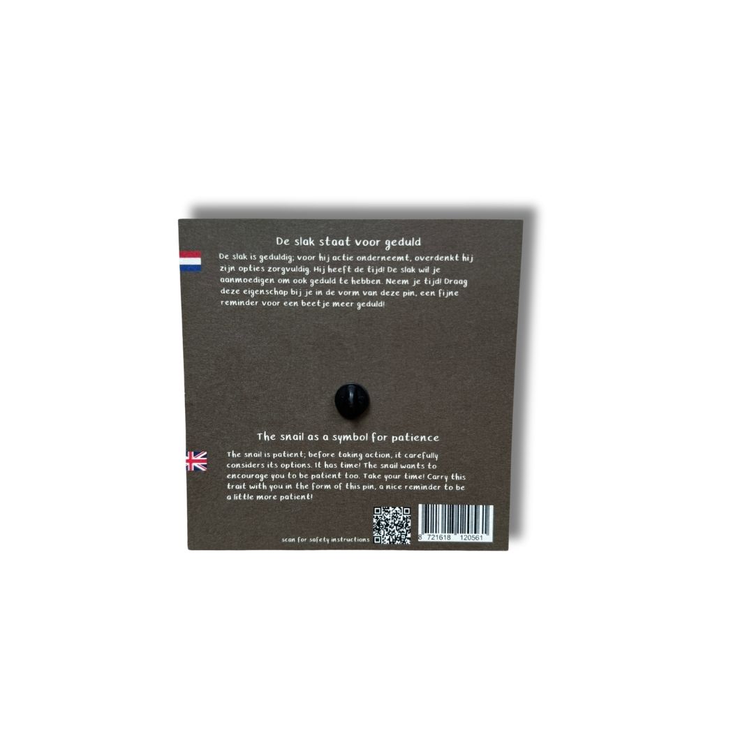 Prachtige kleine emaille pin van een slak. ‘let the snail give you patience with this pin’ is de ondertitel, want het is een pin met superkrachten!