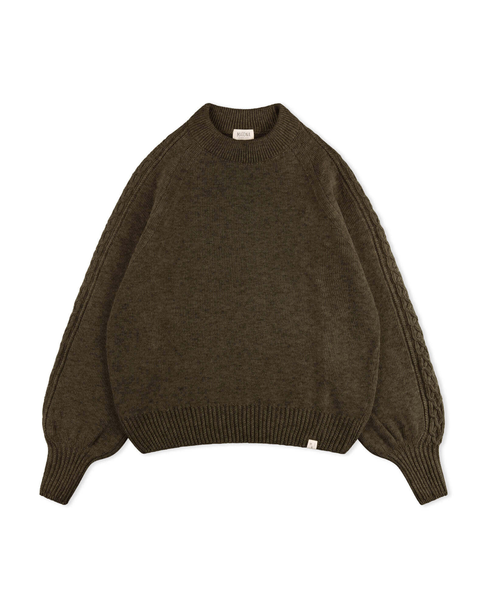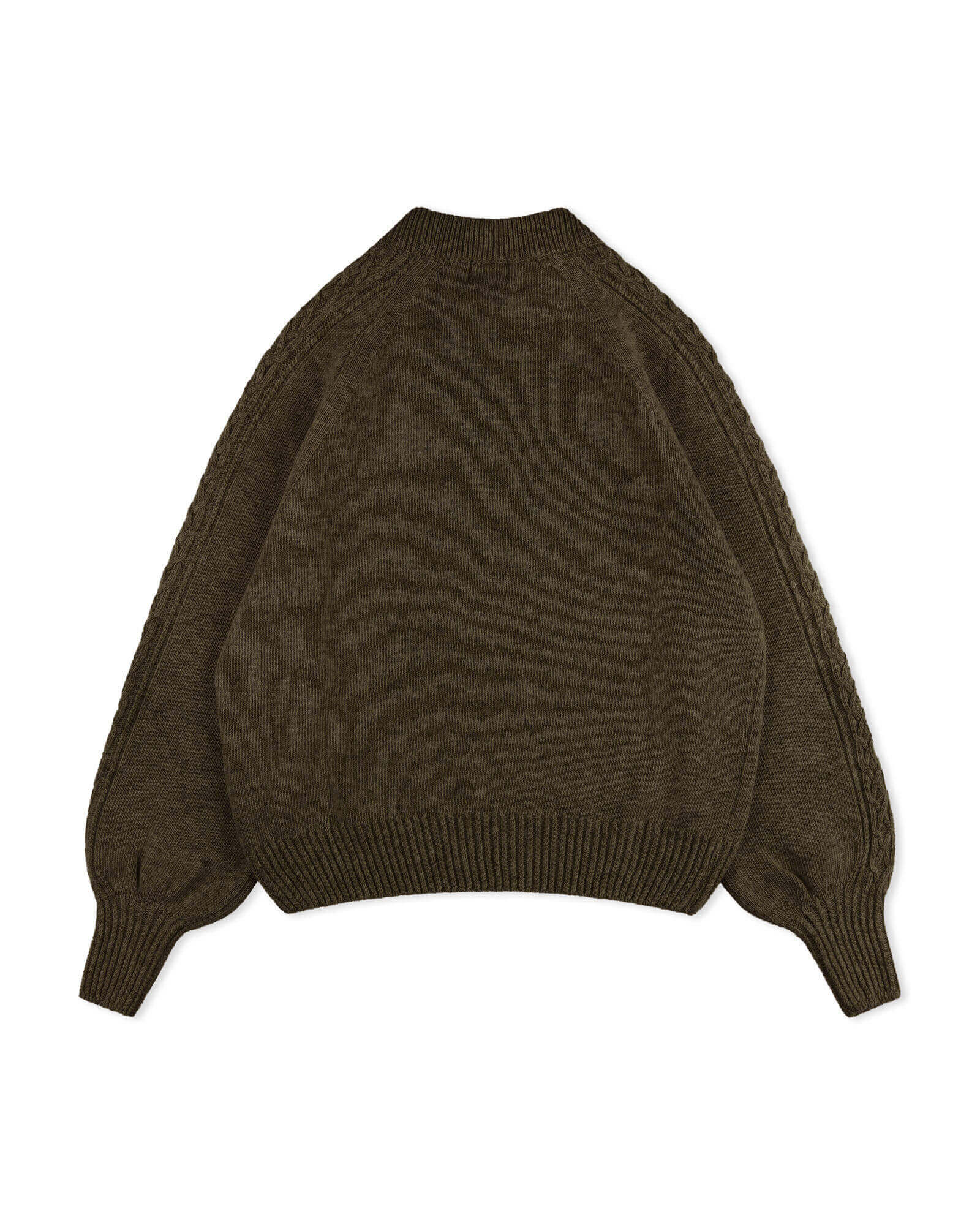 Onze kabeltrui helpt je de wintermaanden door, houdt je warm en ziet er goed uit. Gemaakt van een hoogwaardige mix van wol en katoen, biedt hij de perfecte mix van comfort en stijl. De raglanmouwen zorgen voor een perfecte pasvorm, terwijl het charmante kabelpatroon op de mouwen net dat beetje extra toevoegt.