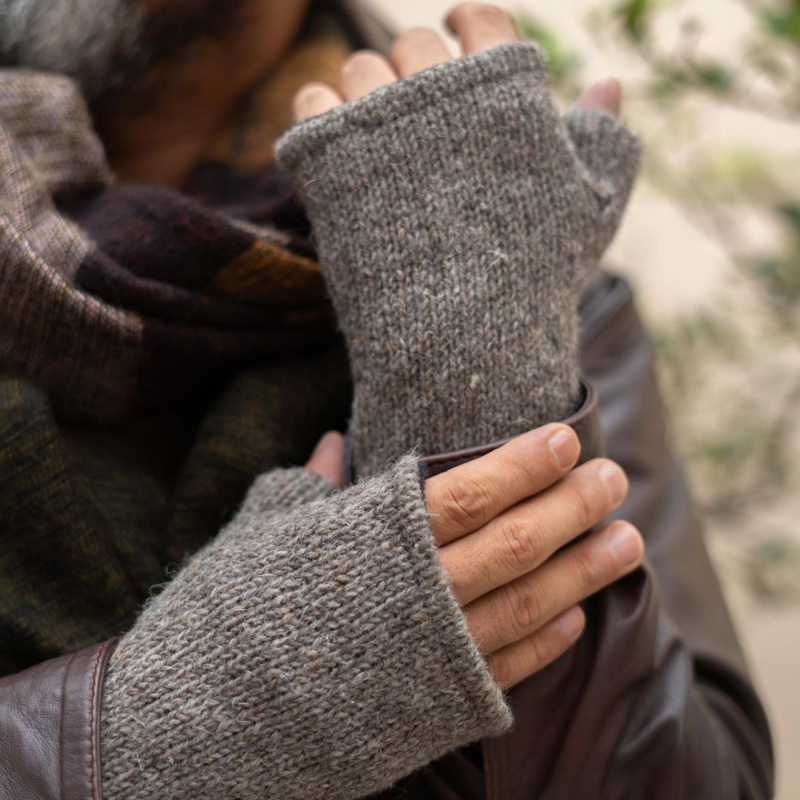 Sjaal met verhaal - wollen gebreide handwarmers taupe