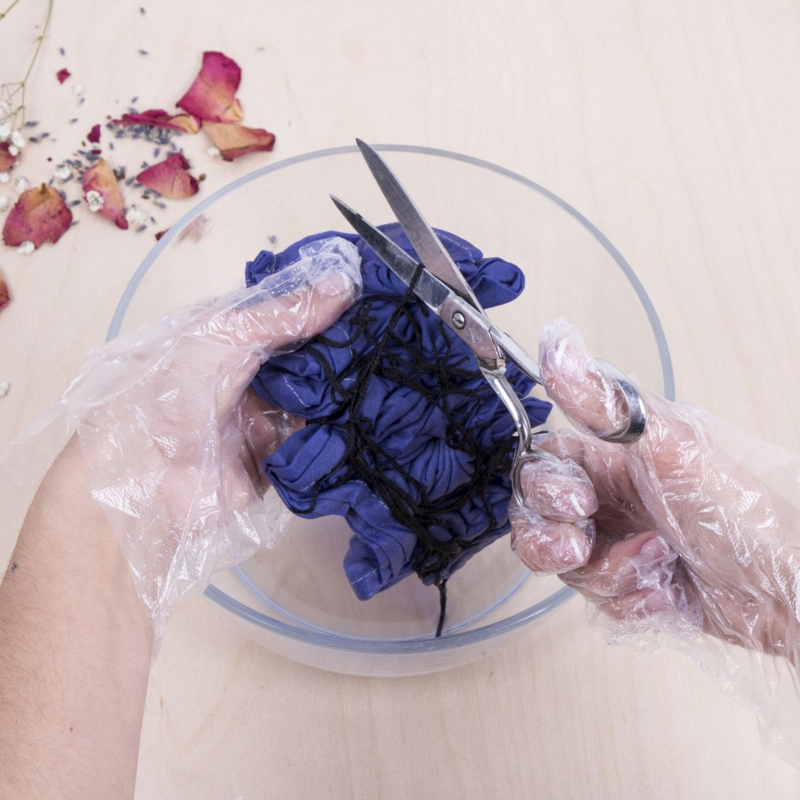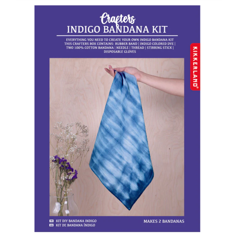Maak een prachtige handgeverfde bandanaBevat: 2 bandana's, lijm, handschoenen, synthetische indigo blauw