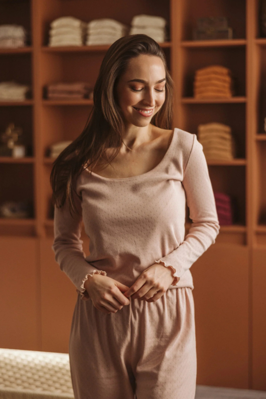 Pointelle top met lange mouwen van zachte, soepele 100% katoen.