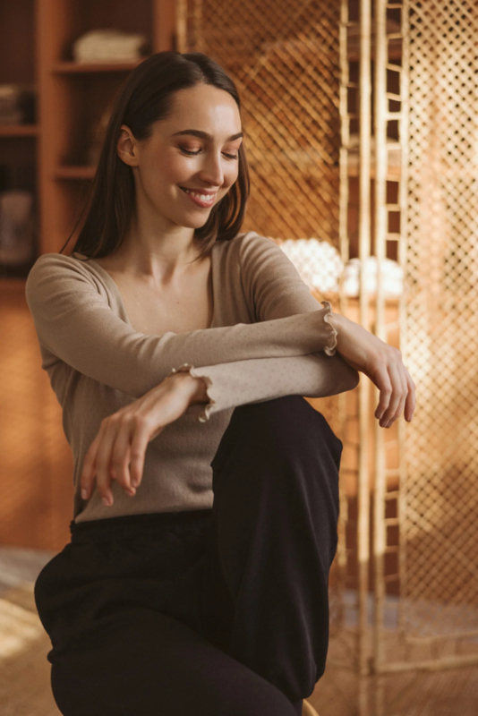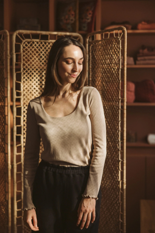 Pointelle top met lange mouwen van zachte, soepele 100% katoen.