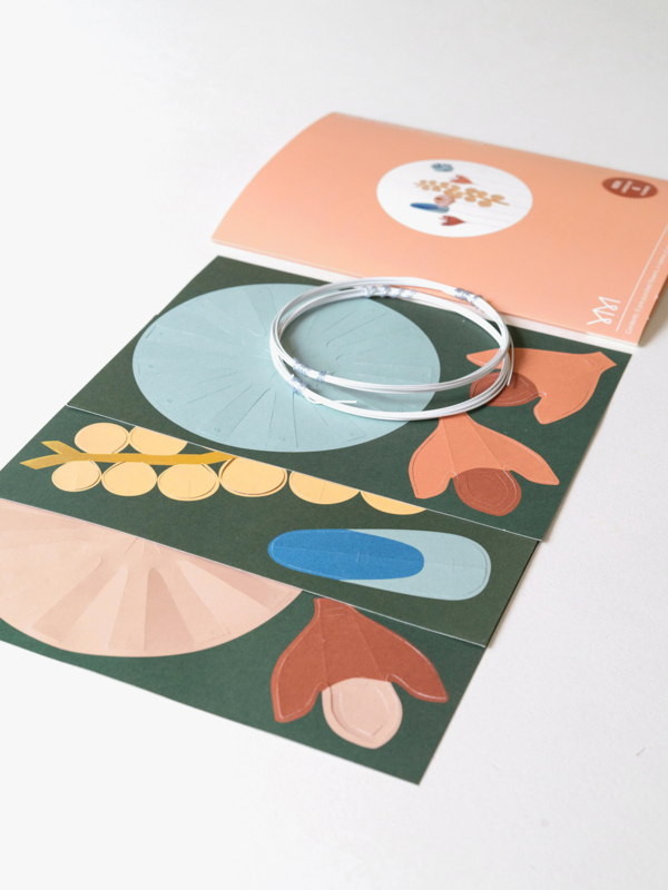 Knip het bloemdraad op de door jouw gewenste lengte, rijg het door de voorgestanste sleufjes en stel je boeket zelf samen. Ook los – als enkele bloem in een vaasje - zijn de bloemen een subtiele blikvanger in je woonkamer. Dit kleurenpalet past bij elke interieur.