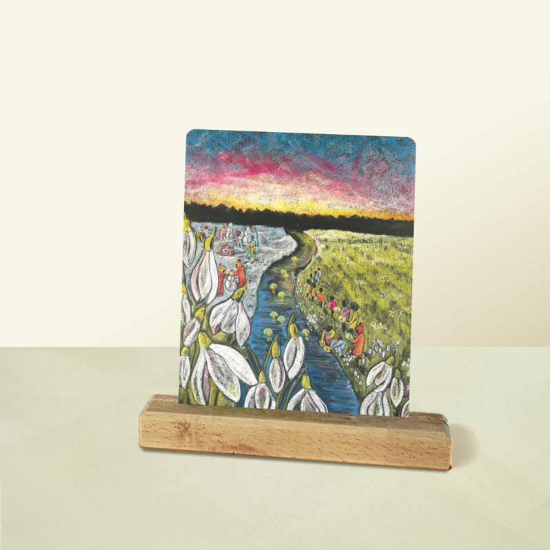 De krijttekening is gedrukt op kwalitatief stevig papier met een dikte van 300 gram en de kaart is afgewerkt met ronde hoeken. De ansichtkaart heeft een standaard formaat van 14,8 x 10,5 cm.