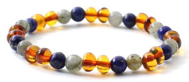 Barnsteen armbandje volwassenen cognac met lapis lazuli en labradoriet, stretch