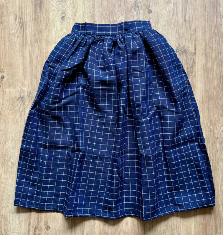 Simply Grey Linen skirt navy white gridHandgemaakte linnen rok met zakken en elastiek in de taille.